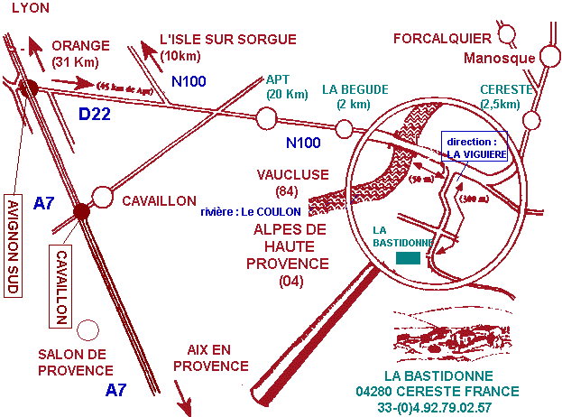 Prendre la direction Apt-Sisteron-Digne. Traverser Apt. Faire environ 15 km. Arriver à la pancarte Céreste-en-Luberon 3km.